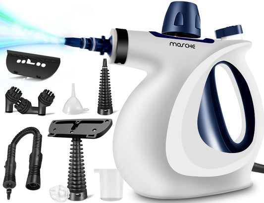 MOSCHE Handheld Pressurized Steam Cleaner with 9-Piece Accessory Set - Multi-Purpose and Multi-Surface All Natural, Chemical-Free Steam Cleaning for Home, Auto, Patio, More