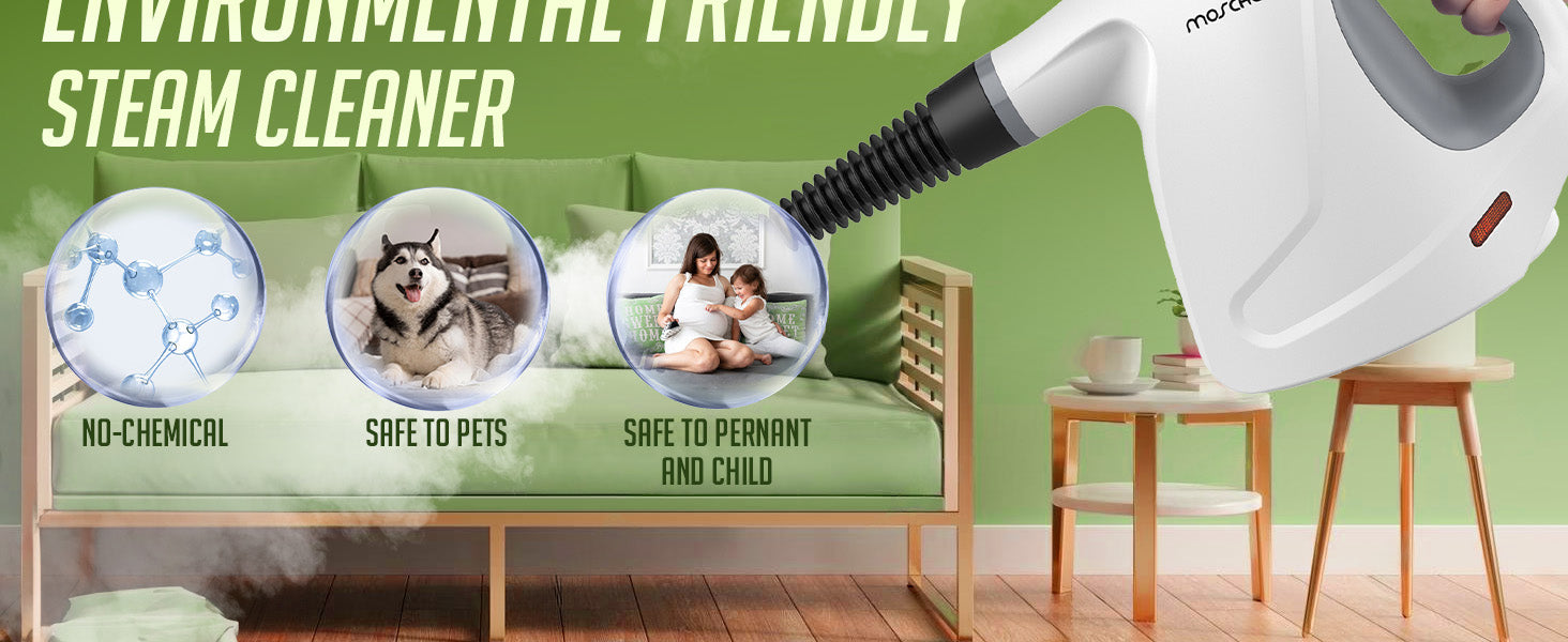 【No Chemical & Safety Steam Cleaner】The safe and reliable handheld steam cleaner for home naturally using only water without chemical so it do nothing harmful. Pretty safe for the family who with kids, the old, pregnant and pets.