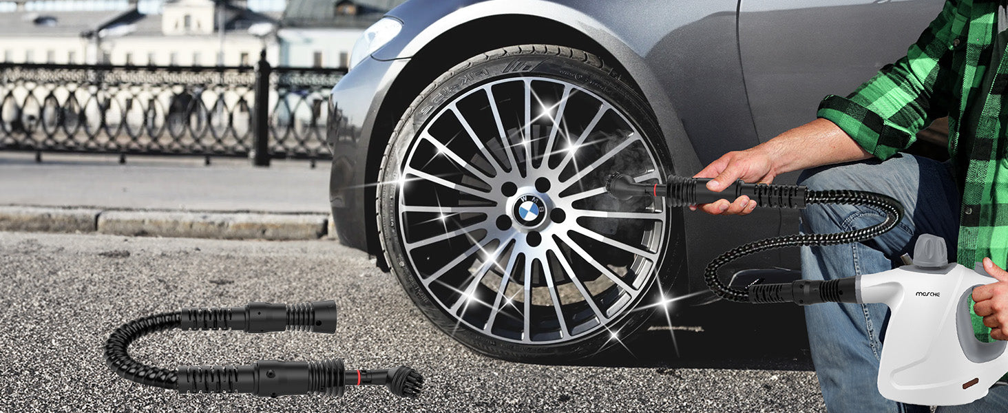 【Multipurpose Steam Cleaner】The handheld pressurized steam cleaner is best suited for hard to reach areas such as hard to reach areas like floor gap and sinks, windows, grout and tile, fabric & sofa material(Direct contact with real leather sofas is not recommended), kids toy, stoves, BBQ grill, toilet, shower curtains, car seats & rims, wallpaper and more.