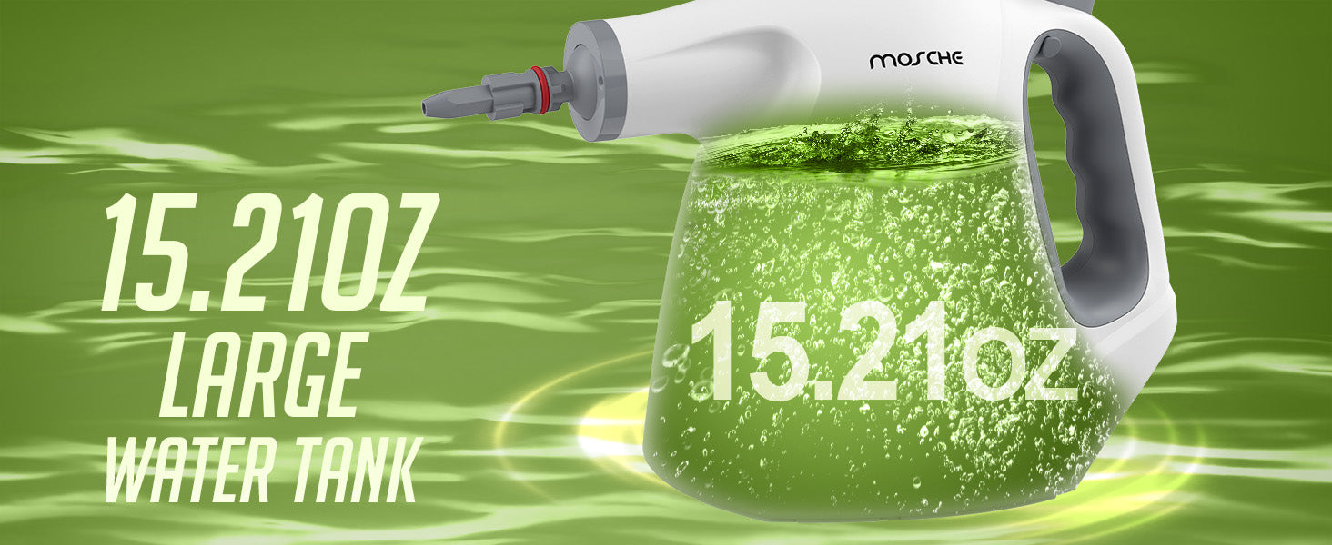 【15.2OZ Water Tank Capacity】This steam cleaner handheld features an extra large water tank of 15.2OZ(450ML) capacity. And the recommended Max water capacity is within 11.83OZ(350ML) to leave a certain space to ensure normal use.